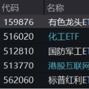 风险提示:有色龙头ETF(159876)被动跟踪中证有色金属指数(930708.CSI),该指数基日为2013.12.31,发布于2015.7.13;化工ETF被动跟踪中证细分化工产业主题指数,该指数基日为2004.12.31,发布于2012.4.11;国防军工ETF被动跟踪中证军工指数,该指数基日为2004.12.31,发布于2013.12.26;港股互联网ETF被动跟踪中证港股通互联网指数,该指数基日为2016.12.30,发布于2021.1.11。指数成份股构成根据该指数编制规则适时调整,其回测历史业绩不预示指数未来表现。文中提及个股仅为指数成份股客观展示列举,不作为任何个股推荐,不代表基金管理人和基金投资方向。任何在本文出现的信息(包括但不限于个股、评论、预测、图表、指标、理论、任何形式的表述等)均只作为参考,投资人须对任何自主决定的投资行为负责。另,本文中的任何观点、分析及预测不构成对阅读者任何形式的投资建议,本公司亦不对因使用本文内容所引发的直接或间接损失负任何责任。投资人应当认真阅读《基金合同》、《招募说明书》、《基金产品资料概要》等基金法律文件,了解基金的风险收益特征,选择与自身风险承受能力相适应的产品。基金的过往业绩并不预示其未来表现,基金管理人管理的其他基金的业绩并不构成基金业绩表现的保证。根据基金管理人的评估,有色龙头ETF(159876)、化工ETF(516020)、国防军工ETF(512810)风险等级为R3-中风险,适宜平衡型(C3)及以上的投资者,港股互联网ETF(513770)风险等级为R4-中高风险,适宜积极型(C4)及以上的投资者,适当性匹配意见请以销售机构为准。销售机构(包括基金管理人直销机构和其他销售机构)根据相关法律法规对以上基金进行风险评价,投资者应及时关注基金管理人出具的适当性意见,各销售机构关于适当性的意见不必然一致,且基金销售机构所出具的基金产品风险等级评价结果不得低于基金管理人作出的风险等级评价结果。基金合同中关于基金风险收益特征与基金风险等级因考虑因素不同而存在差异。投资者应了解基金的风险收益情况,结合自身投资目的、期限、投资经验及风险承受能力谨慎选择基金产品并自行承担风险。中国证监会对以上基金的注册,并不表明其对本基金的投资价值、市场前景和收益做出实质性判断或保证。基金投资需谨慎。
