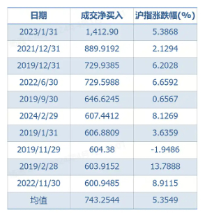 在净买入额后10的月份中(即净卖出额前10的月份),沪指全部出现下跌,且平均跌幅达到5.3%。
