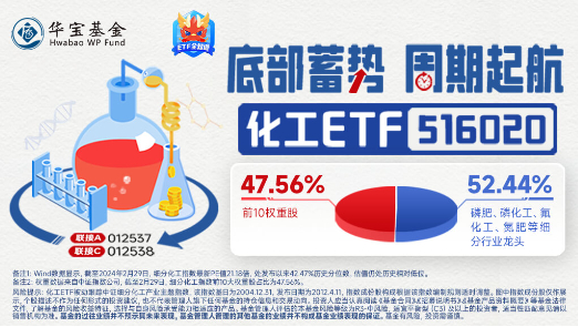 成份股方面,纯碱、石化、钾肥等子板块领涨。远兴能源大涨超2%,化工ETF(516020)第二大权重股,钾肥龙头盐湖股份,石化股新凤鸣、桐昆股份,聚氨酯巨擘万华化学等均涨超1%。
