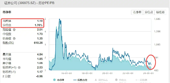 截至4月8日收盘,券商ETF(512000)标的指数中证全指证券公司指数市净率PB为1.19倍,位于近10年1.76%分位点的历史底部,当前位置上行空间或远大于下行风险,板块安全边际充足。