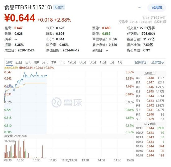 文中图片及数据来源于沪深交易所、华宝基金、Wind、雪球等,截至2024年4月15日。风险提示:食品ETF(515710)被动跟踪中证细分食品饮料产业主题指数,该指数基日为2004.12.31,发布于2012.4.11,指数成份股构成根据该指数编制规则适时调整。文中指数成份股仅作展示,个股描述不作为任何形式的投资建议,也不代表管理人旗下任何基金的持仓信息和交易动向。基金管理人评估的本基金风险等级为R3-中风险,适合适当性评级C3(平衡型)及以上投资者。任何在本文出现的信息(包括但不限于个股、评论、预测、图表、指标、理论、任何形式的表述等)均只作为参考,投资人须对任何自主决定的投资行为负责。另,本文中的任何观点、分析及预测不构成对阅读者任何形式的投资建议,亦不对因使用本文内容所引发的直接或间接损失负任何责任。基金投资有风险,基金的过往业绩并不代表其未来表现,基金管理人管理的其他基金的业绩并不构成基金业绩表现的保证,基金投资需谨慎。