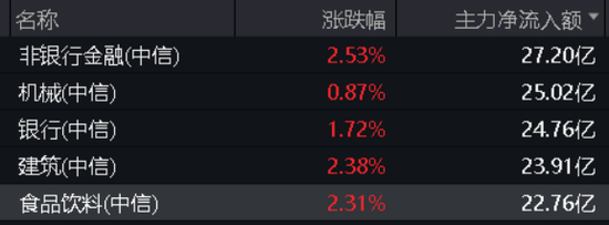 资金面上,主力毫不掩饰对吃喝板块的看好,大举进场扫货,截至发稿,食品饮料板块获主力资金净流入额超22亿元,在30个中信一级行业中稳居前5。