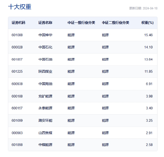 风险提示:基金有风险,投资需谨慎。投资人应当阅读《基金合同》《招募说明书》《产品资料概要》等法律文件,了解基金的风险收益特征,特别是特有风险,并根据自身投资目的、投资经验、资产状况等判断是否和自身风险承受能力相适应。基金管理人承诺以诚实信用、谨慎尽责的原则管理和运用基金资产,但不保证基金一定盈利或本金不受损失。能源ETF属于中等风险等级(R4)产品,适合经客户风险等级测评后结果为进取型(C4)及以上的投资者。文中提及个股仅为指数成份股客观展示列举,本文出现信息只作为参考,投资人须对任何自主决定的投资行为负责。本文中的任何观点、分析及预测不构成对阅读者任何形式的投资建议。标的指数并不能完全代表整个股票市场。标的指数成份股的平均回报率与整个股票市场的平均回报率可能存在偏离。请投资者关注指数化投资的风险以及集中投资于中证800能源指数成份股的持有风险,请关注部分指数成份股权重较大、集中度较高的风险,请关注指数化投资的风险、ETF运作风险、投资特定品种的特有风险、参与转融通证券出借业务的风险等。