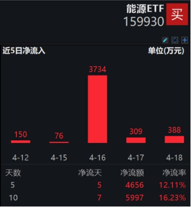 从资金净流入方面来看,能源ETF(159930)近7日获得连续资金净流入,最高单日获得3734万元净流入,今日再度净流入超1600万元,7日合计“吸金”超6600万元,日均净流入达954万元。