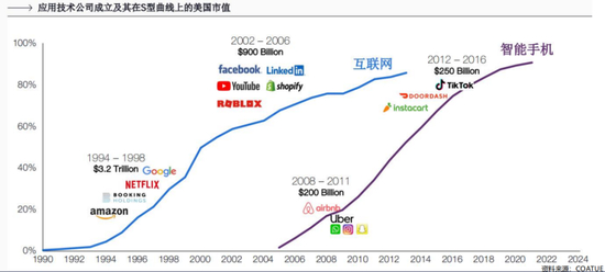 在前几个技术浪潮下,都产生了很多大型应用。很多相关应用都产生了很多大市值的公司,AI浪潮中,大型的应用目前还处于起步阶段。