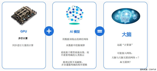 在过去的50年,GPU加软件,造出来了越来越快的计算机和计算器,在未来50年,GPU加AI模型等于超级智能大脑。