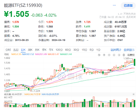 煤炭石油全线回调,中国海油、中国石油、中国神华重挫,能源ETF(159930)大跌超4%,资金选择越跌越买!