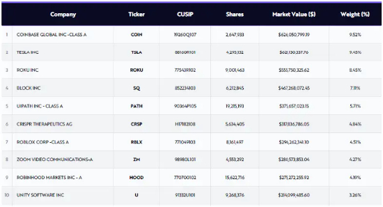 来源:ARK基金官网,截至2024.4.24。图中个股仅作信息展示,个股描述不作为任何形式的投资建议,也不代表管理人旗下任何基金的持仓信息和交易动向。