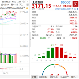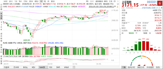 今天市场震荡攀升,上证综指创8个月新高,周期股全线走强,有色金属领涨,地产股表现分化。上证指数收涨0.54%报3171.15点,创业板指涨0.59%。全天A股成交接近1万亿元。