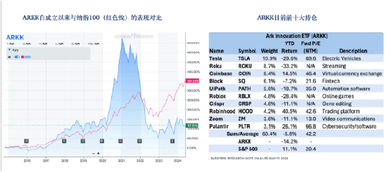 如果你相信美国经济不会一直高温高压过热下去,你相信降息回来,那么此时应该开始布局一些降息弹性品种更大的,比如木头姐的ARK。