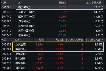 ①主力资金方面,截至发稿,电子板块获主力资金净流入39.67亿元,高居31个申万一级行业断层第一。值得注意的是,电子50指数重仓的立讯精密、中芯国际获主力加仓超3.5亿元,分别位居A股吸金榜第一、第二!