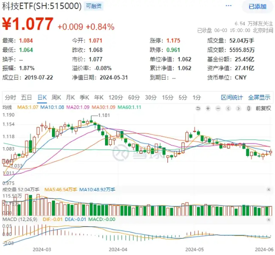 热门ETF方面,代表A股核心科技龙头行情的科技ETF(515000)逆市红盘震荡,场内价格收涨0.84%,成功收复10日均线,全天成交额近5600万元。