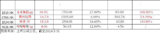 港股互联网ETF(513770)标的指数中证港股通互联网指数权重占比近7成的前五大成份股中,已有四家披露一季度业绩,利润释放普遍较为强劲。小米集团、腾讯控股、快手单季度利润均创历史新高,腾讯控股更是首次单季净利突破500亿元;哔哩哔哩经调整净亏损同比收窄56%。
