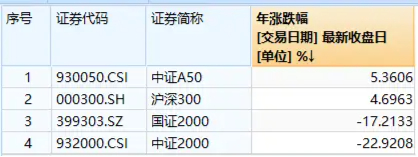 今年以来,以大为美风格持续发酵,充分彰显核心资产定力。截至今日收盘,代表权重股的中证A50、沪深300年内累涨5.36%4.7%大幅跑代表小微盘的中证2000-22.92%)、国证2000指数(-17.21%)。
