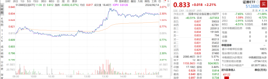 证券板块午后拉涨,证券ETF(512880)涨2.21%。