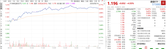 通信板块今日表现亮眼,通信ETF(515880)涨4.55%。