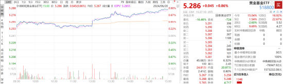 金价近期也有所回暖,黄金基金ETF(518800)涨0.86%。