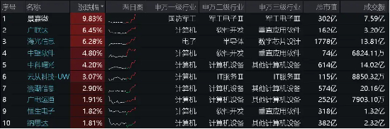 图:中证信创指数涨幅前10大成份股