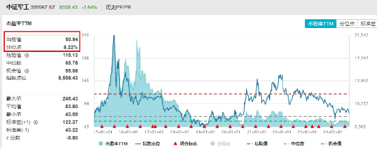 估值数据上,截至今日收盘,国防军工ETF(512810)跟踪的中证军工指数PE估值50.94倍,处于近10年来8.22%分位点,即当前估值低于近10年90%以上时间区间,配置性价比尤为凸显。