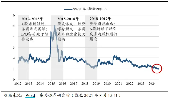 与行业历史上数次“困境”相比,当前券商板块估值到哪了?