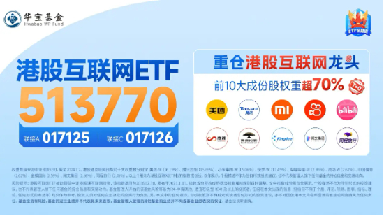 布局工具上港股互联网ETF(513770)跟踪中证港股通互联网指数(931637),权重股汇聚腾讯控股、美团、小米集团、快手等互联网龙头公司,其中持仓腾讯控股、美团、小米集团、快手、京东健康权重60%,前十大成份股权重超70%龙头属性突出。截至7,港股互联网ETF(513770)年内日均成交额达2.28亿元,可日内T+0交易,流动性佳!