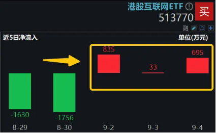 值得注意的是,港股互联网ETF(513770)近日资金面显著回暖。上交所数据显示,港股互联网ETF(513770)本周前3个交易日持续吸金,合计净流入1563万元