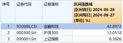 来源:Wind,统计区间2024.8.28-2024.9.27。中证金融科技主题指数2019-2023年年度涨跌幅分别为:48.18%、10.46%、7.16%、-21.40%、10.03%。指数过往业绩不预示未来表现。