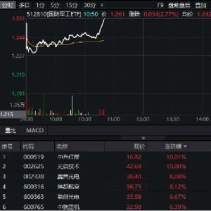 国防军工继续活跃,中兵红箭、光启技术涨停!国防军工ETF(512810)直线拉涨超2.7%!低空经济概念全线飙升