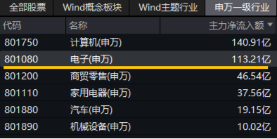 资金面上,主力资金大举涌入电子板块!Wind数据显示,电子板块全天获主力资金净流入113.21亿元,高居31个申万一级行业第二位。个股方面,电子ETF(515260)标的指数成份股中科曙光获主力资金加仓45.43亿元,荣登A股“吸金榜”TOP2。