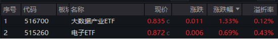 盘面上,普跌背景下,科技方向仍有火花!智谱AI概念持续高热,大数据产业、消费电子、金融IT等概念均逆市走强,相关热门标的大数据产业ETF(516700)早盘一度涨超3%,电子ETF(515260)盘中上探2.54%,金融科技ETF(159851)全天躁动。