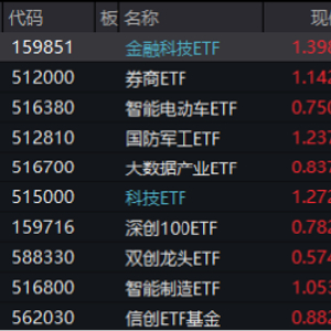大金融方面,受益于市场交投的持续活跃以及“跨境理财通”试点等因素影响,金融股尾盘爆发,山西证券尾盘急拉触板,券商ETF(512000)场内翘尾拉涨3.63%,“旗手”有望开启第二轮行情。叠加“科技”属性的金融科技板块具备极强爆发力,赢时胜、汇金科技20CM涨停,金融科技ETF(159851)场内强势反包涨超4%!