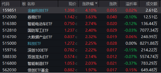 超级周来临!大金融尾盘爆发,金融科技ETF(159851)涨超4%!成长风格走强,国防军工多股涨停!