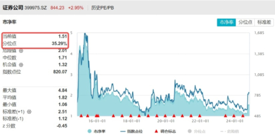 截至上周五(11月1日),券商ETF(512000)跟踪的中证全指证券公司指数市净率PB(LF)为1.51倍,处于近10年35.29%分位点的相对低位,估值或仍有向上空间。