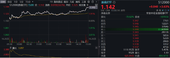A股顶流券商ETF(512000)高开高走,尾盘出现明显的放量上扬,场内价格收涨3.63%,全天成交额12.51亿元,环比放量。