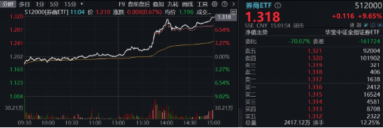 一、“旗手”牛冠全场!“一哥”携5股强势涨停,东方财富叒登A股成交榜首,券商ETF(512000)飙涨9.65%!
