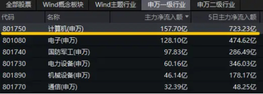资金面上,主力资金大举涌入计算机板块!Wind数据显示,信创ETF基金(562030)标的指数重仓的计算机板块全天获主力资金净流入157.7亿元,近5日获主力资金加仓723.23亿元,均高居31个申万一级行业首位!