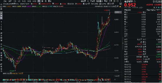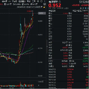 热门ETF方面,含“芯”量47%的电子ETF(515260)场内价格一度涨逾3.4%,现涨2.04%,盘中上探年内高点(0.966元)。