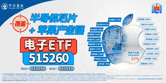 布局工具上,电子ETF(515260)紧密跟踪电子50指数,覆盖半导体芯片苹果产业链,截至三季度末,含“芯”量47%,含“果”量33%,全面覆盖AI芯片、消费电子、汽车电子、5G、云计算等热门产业龙头公司,一键布局A股电子核心资产。看好消费电子半导体发展机遇的投资者,或可重点关注。