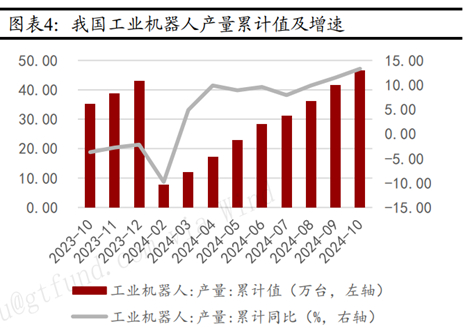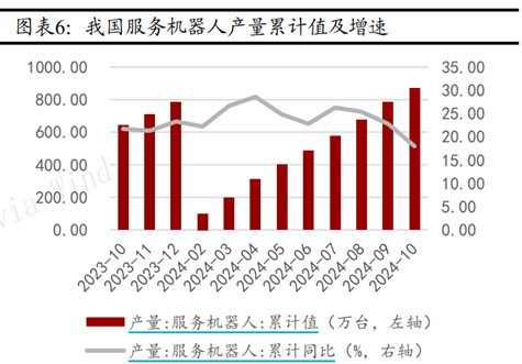 今年1~10月,我国工业机器人产量为46.57万台,同比增长13.3%,服务机器人产量为871.19万套,同比增长18%。整体来看,工业机器人生产恢复情况较好。目前我国已成为全球工业机器人产量最大的国家,拥有了完整的产业链条。我国服务机器人产量增长较为稳定,近年来随着技术的快速进步,服务机器人产品持续迭代升级。服务机器人正逐步满足人们多样化的需求,我国服务机器人行业正在快速发展。