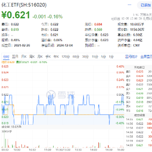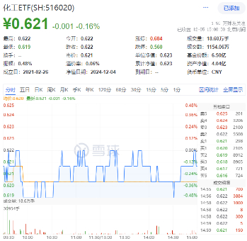 今日(12月5日),化工板块震荡回调,反映化工板块整体走势的化工ETF(516020)开盘后持续低位震荡,最终场内价格小幅收跌0.16%。