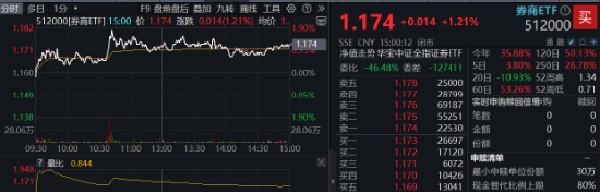 二、又见险资举牌,这次是券商股!湘财股份盘中触板,券商ETF(512000)涨逾1%,机构:看好券商交易性机会