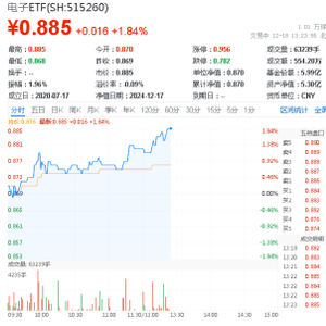 热门ETF方面,含“芯”量47%的电子ETF(515260)午后震荡攀升,场内价格现涨1.84%,一举收复5日、10日、20日均线。