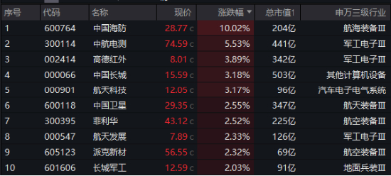 成分股方面,国防军工ETF(512810)所覆盖的80只国防军工龙头股中58只收涨,中国海防午后突然直线冲高,涨停封板!中航电测盘初一度冲刺涨停,收涨5.53%,高德红外、中国长城、航天科技等多股涨超3%。