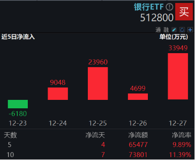 35.89%!银行板块年内涨幅夺魁,年末行情持续,银行ETF(512800)放量6连阳,又有两只银行股创新高!