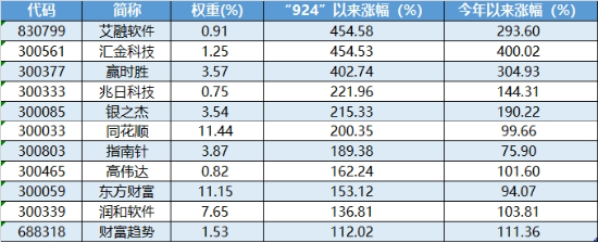 从具体个股来看,金融科技板块成牛股摇篮。数据显示,截至12月30日,“924”行情以来金融科技指数共计11股股价实现翻倍增长。其中,从全市场涨幅排行榜(剔除新股,下同)来看,艾融软件(+454.58%)高居第一,汇金科技(+454.53%)位居第二,赢时胜(+402.74%)位居第四!