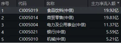 资金面上,吃喝板块今日获主力资金大举流入。Wind数据显示,截至10:25,食品饮料板块获主力资金净流入额已接近20亿元,在30个中信一级行业中高居首位。