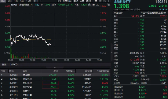 权重股集体走弱,同花顺领跌超5%,金融科技板块再度下挫逾2%,金融科技ETF(159851)持续吸金