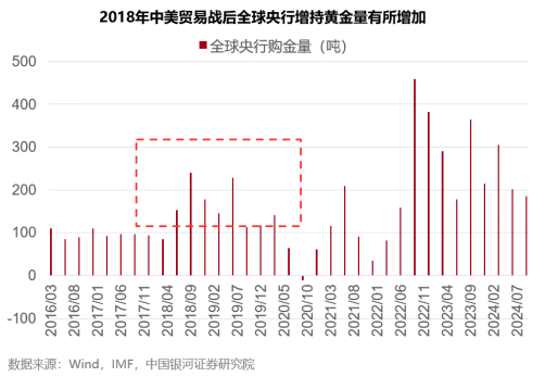 特朗普的政策主张方面,中期抬升的通胀预期、扩大的财政赤字对于金价可能有一定利好。此外贸易摩擦等政策主张可能加剧全球不确定性,对于金价有一定支撑。我们观察到2018年中美“贸易战”后,央行购金有一定增加。中国央行11月合计黄金储备增加4.9吨,时隔半年再度增持黄金,对市场的多头情绪可能有一定提振。