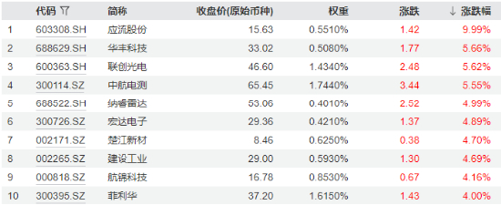 图:中证军工指数成份股涨幅TOP10(2025年1月7日)