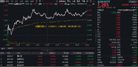 一、赢时胜领涨超12%,金融科技ETF(159851)放量反弹1.5%,买盘资金活跃!板块迎多重利好催化